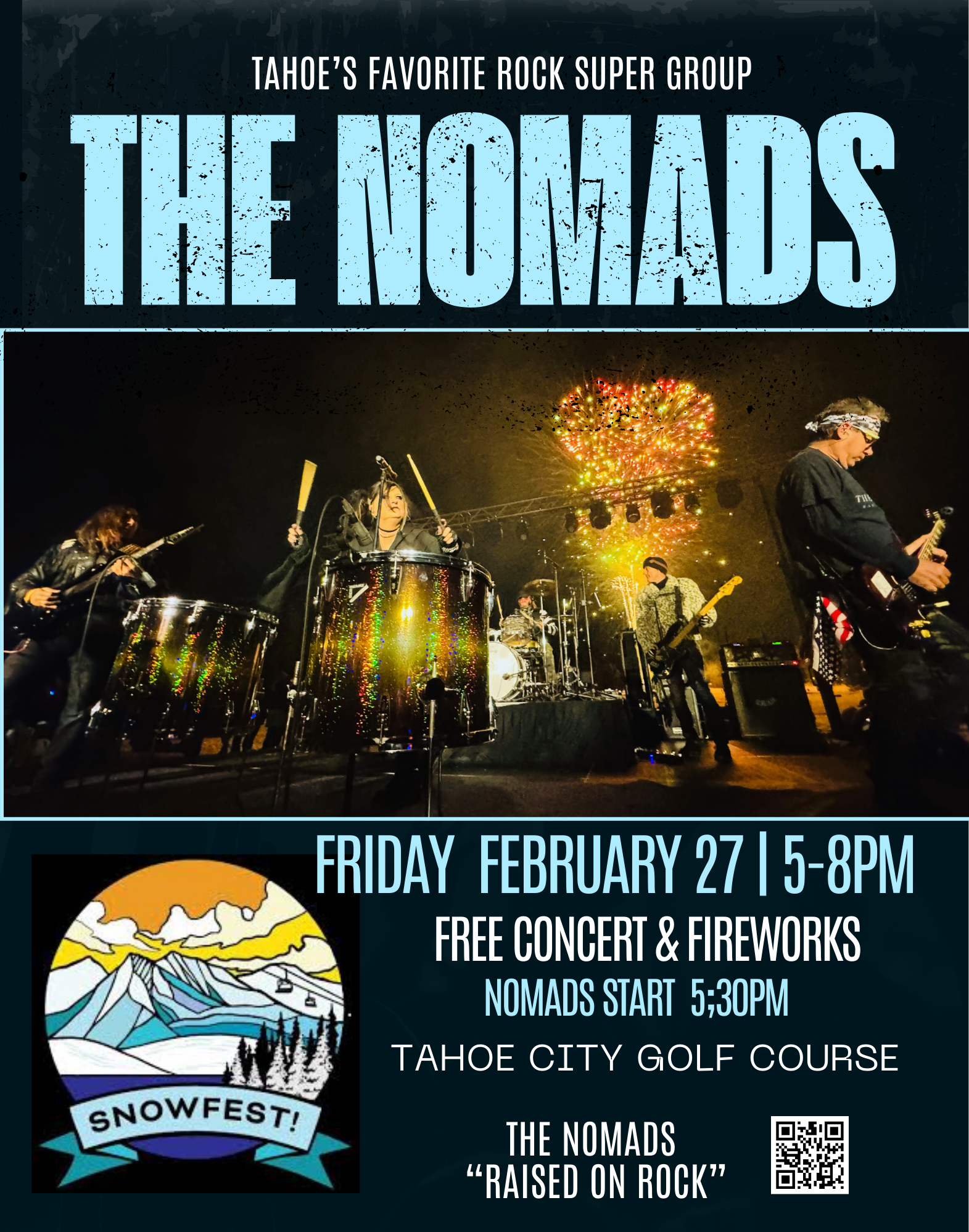 The evening kicks off at 5:30 PM with local favorites The NOMADS, bringing all the high-energy, feel-good Tahoe vibes. Then, as the sun sets, bundle up and look to the sky—the best fireworks in Tahoe will launch right from the snow, visible from all around Tahoe City.